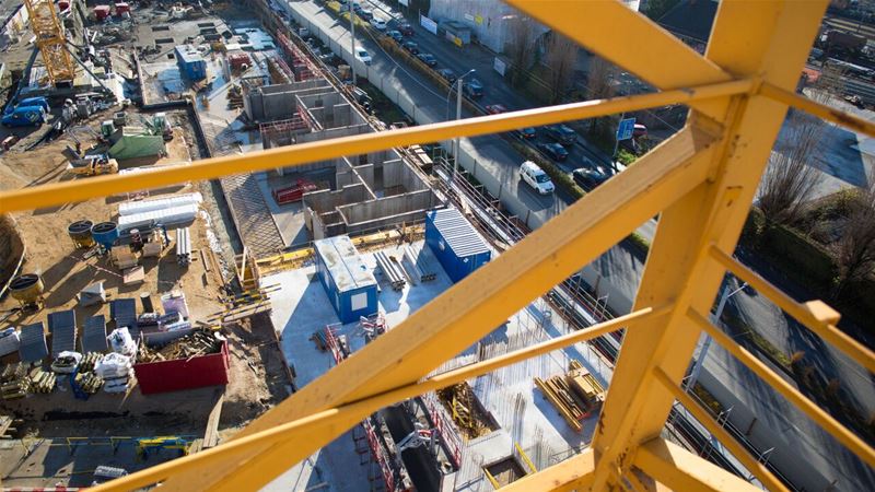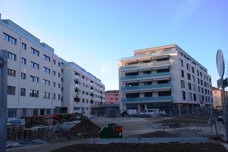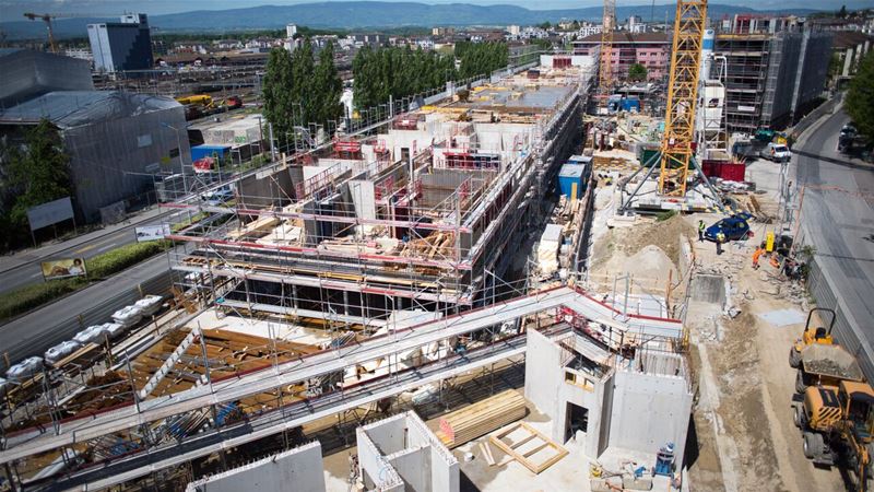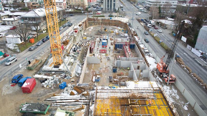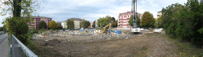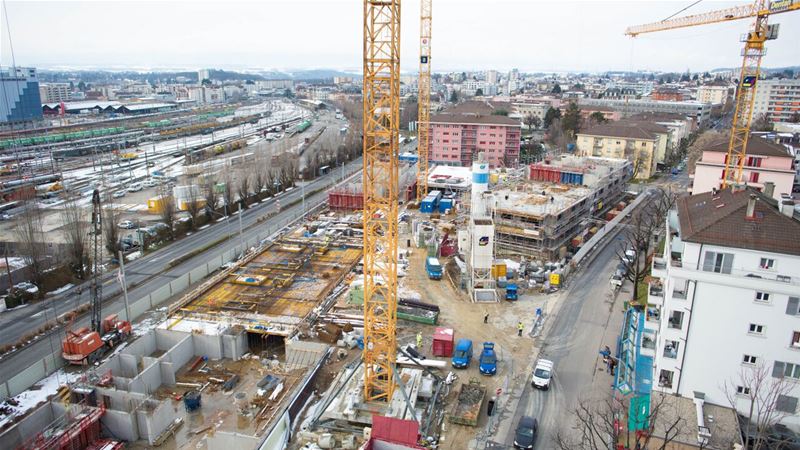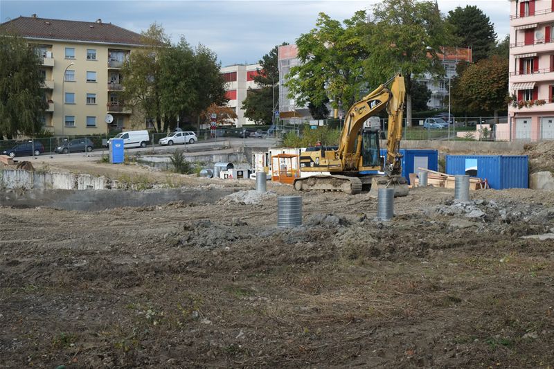 Le chantier proprement dit a débuté au printemps 2014. Un important travail de dépollution a été effectué et la nature du terrain instable a nécessité la pose de plus de 500 pieux en acier et en béton pour garantir la stabilité des futurs édifices. De nombreux forages géothermiques ont été réalisés permettant ainsi de réaliser un quartier exemplaire au niveau écologique.