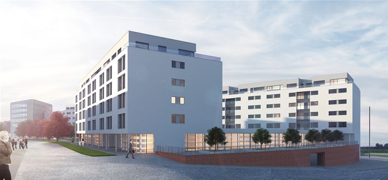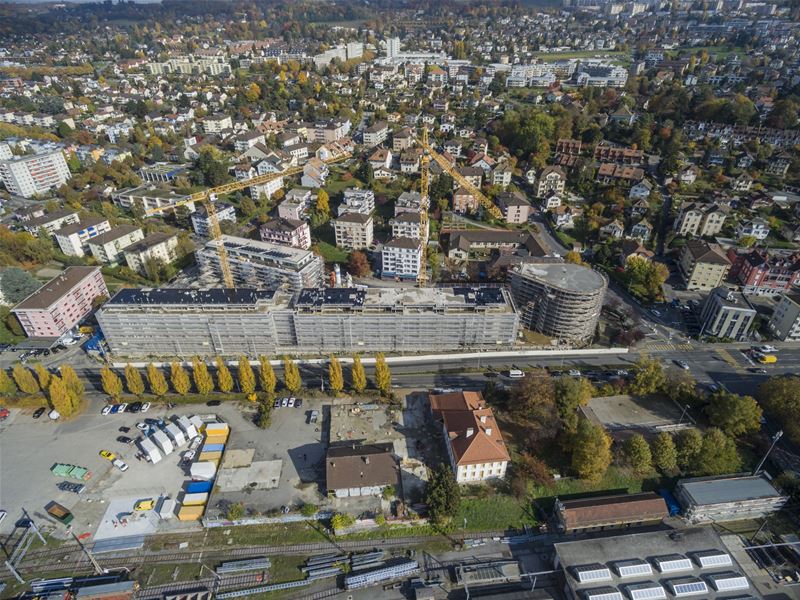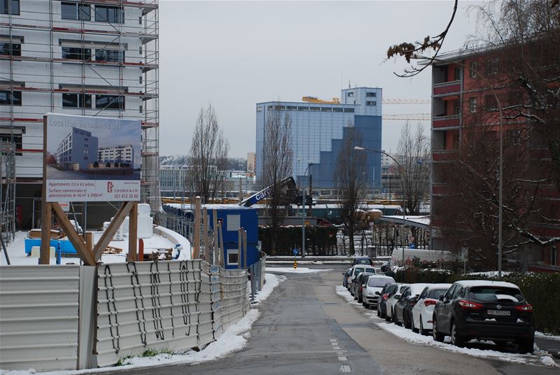 Le projet prévoit des surfaces de plancher constructibles de 23'000m2, réparties en 157 appartements dont 48 subventionnés et du logement pour étudiants, des activités tertiaires et commerciales pour une surface de 4'400m2 et une unité scolaire de 6 salles de classe.
