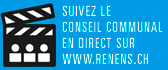 Retransmission du Conseil communal Les débats du Conseil communal de Renens sont retransmis sur internet en direct, avec une fonction "replay" possible de 2 heures en arrière et en vidéo dès le lendemain matin de la séance.Conseil : les spectateurs peuvent consulter l'ordre du jour de la séance ici Ils sont également visibles à la TV en différé sur le canal info des téléréseaux de l’agglomération lausannoise en règle générale les vendredi à 20h, samedi à 14h et dimanche 18h qui suivent la séance. Si les séances du Conseil de Prilly ont lieu la même semaine, la retransmission des séances de Renens est déplacée au samedi à 18h, dimanche à 14h, et la semaine suivante le vendredi à 20h, samedi 14h et dimanche à 20h. |