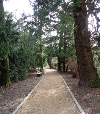 Une fontaine à boire permet d’étancher sa soif et une grande plateforme en bois protège les racines du grand cèdre et apporte un élément original à ce parc.