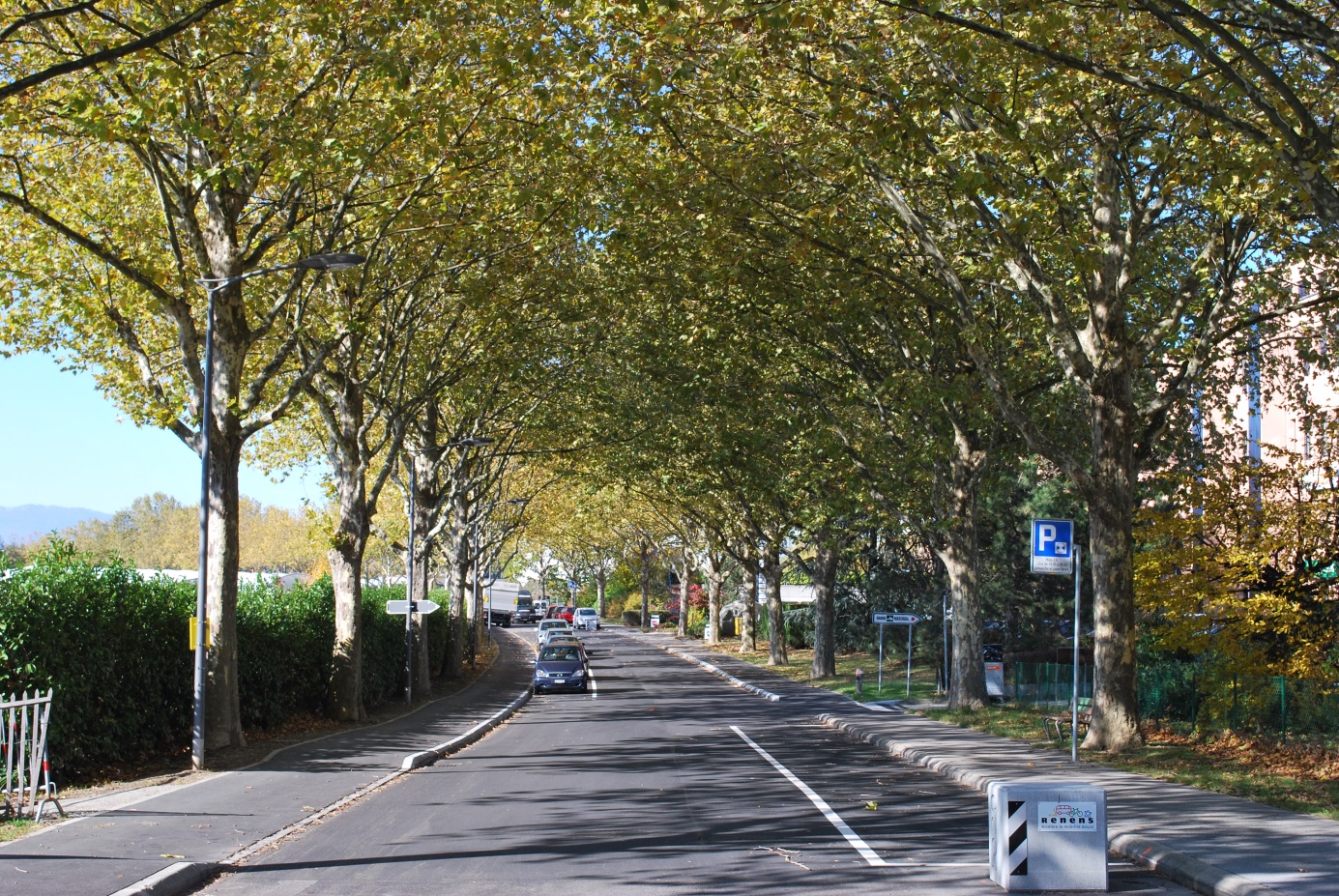Cette promenade longeant l'avenue du Censuy au sud de la ville a été complètement aménagée en 2013. Les vieux peupliers ont laissé avantageusement la place à une belle alignée de Crataegus (Aubépines) plantée plus au sud, entre la promenade et le parking de la Piscine. Un bel exemplaire de cornouiller, déjà présent sur le site, a naturellement incité les concepteurs à compléter cette bande herbeuse de 2'300 m