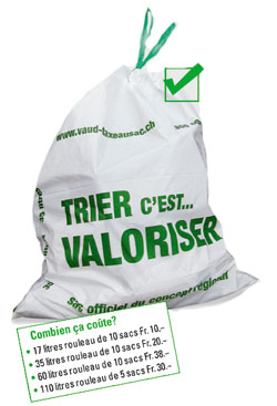 Tout déchet non recyclable qui entre dans un sac à ordures blanc taxé de 35, 60 ou 110 litres. Par mesure de propreté et d'hygiène, mettez vos déchets en sac, puis en conteneur ou en conteneurs enterrés. |