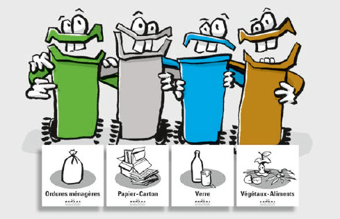 Sac à ordures à mettre en conteneur, déposé en bord de route au plus tôt à 20h la veille du jour officiel ou en conteneurs enterrés. Utilisez des conteneurs agréés afin de faciliter la collecte et d'éviter les déprédations (commande de conteneurs). |