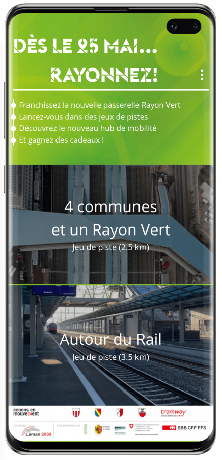 Sur mobile, rendez-vous sur rayonnez.ch. Choisissez l'un des deux jeux de pistes proposés et suivez les instructions pour répondre à la question mystère posée en début de jeu.